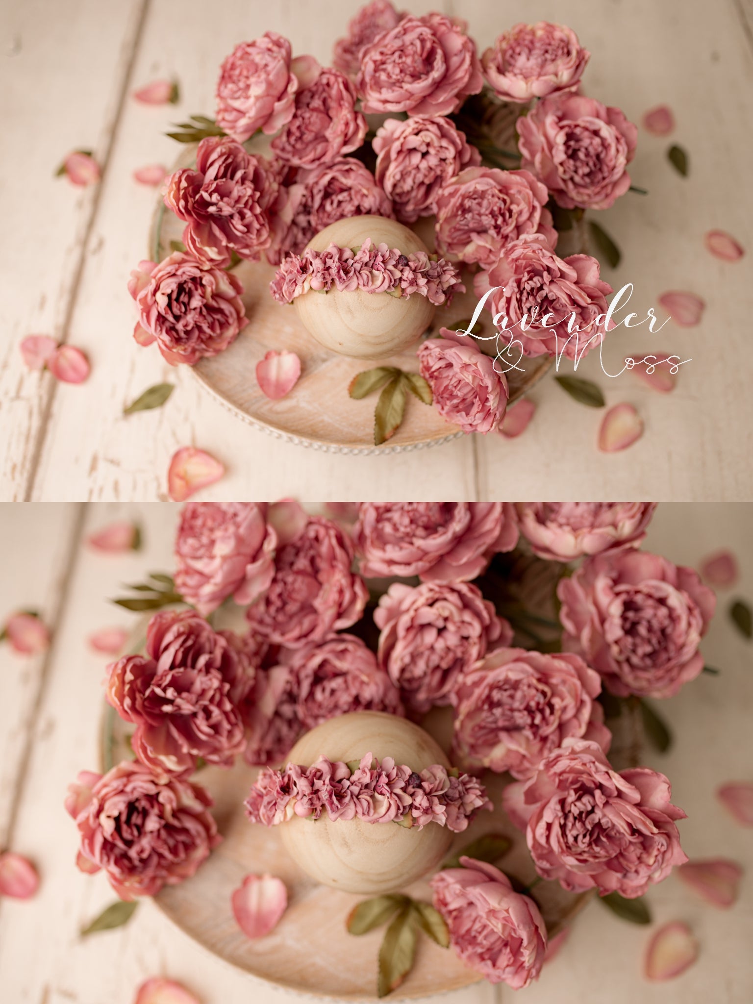 This beautiful studio set includes a floral halo and floral accents as pictured in the photos.