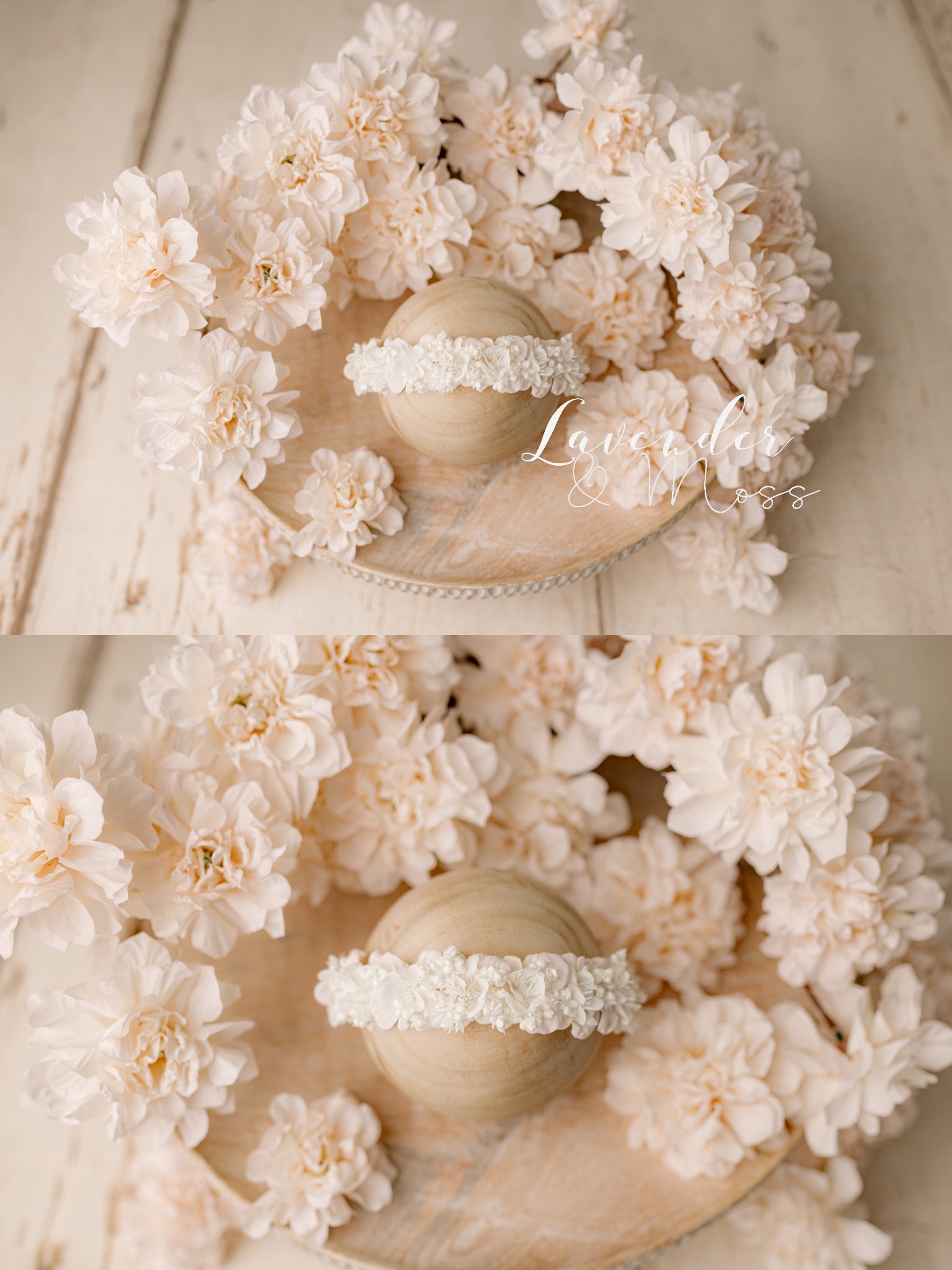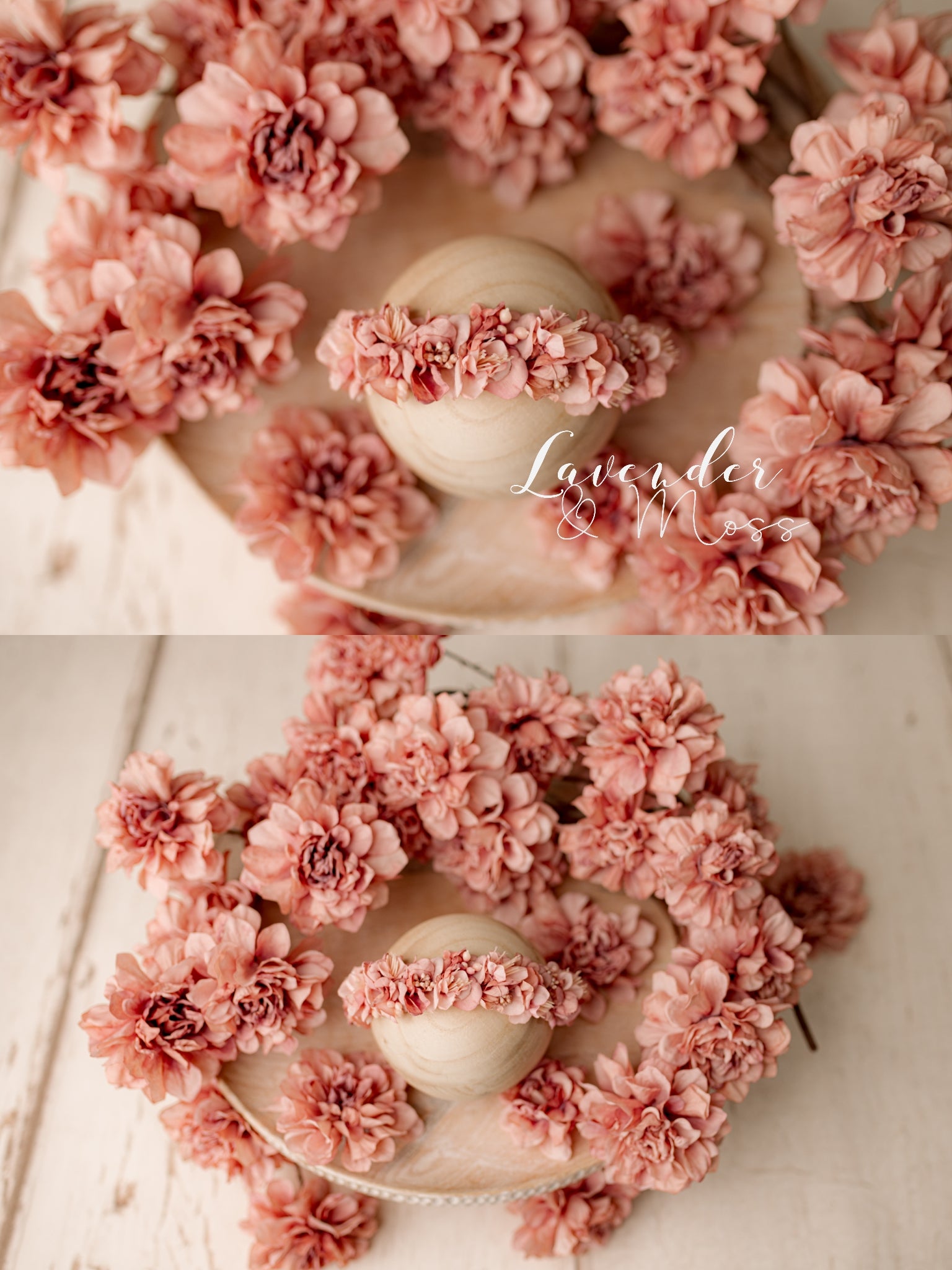 This beautiful studio set includes a floral halo and floral accents as pictured in the photos.